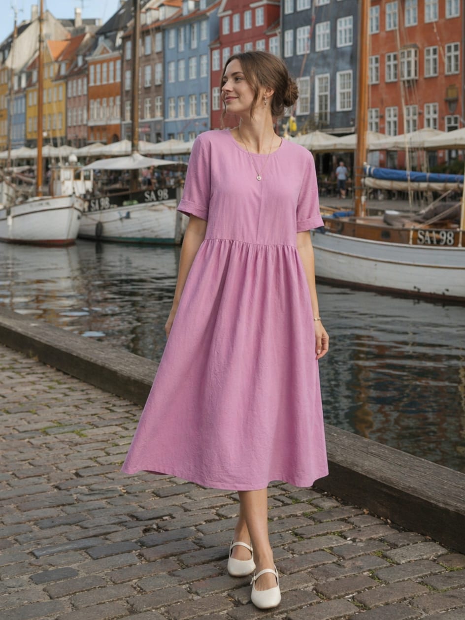 Kerge ja elegantne 100% puuvillane kleit on ideaalne valik teie igapäevasesse garderoobi. Pikkus 114 cm tagab mugavuse ja liikumisvabaduse ning funktsionaalsust lisavad praktilised taskud, mis on kenasti seeliku õmblustesse peidetud. Naturaalne kangas hingab ja annab mugavuse ja kerguse tunde igaks päevaks.