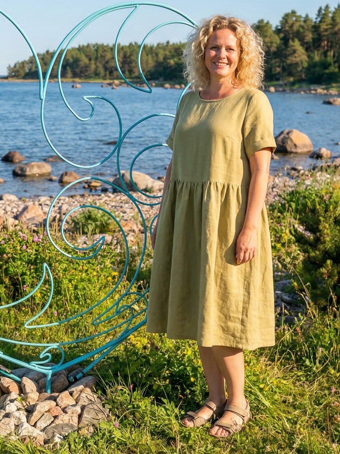 Платье из 100% льна Лёгкое и дышащее платье свободного кроя из натурального льна. Натуральная ткань обеспечивает комфорт даже в жаркую погоду, а лаконичный дизайн делает модель универсальной для повседневных образов и отдыха. Материал: 100% лён Длина изделия: 115 см Крой: свободный, с лёгкой сборкой по линии талии Рукав: короткий Посадка: комфортная, не сковывает движения Идеально подходит для прогулок, отпуска и повседневной носки 🌿